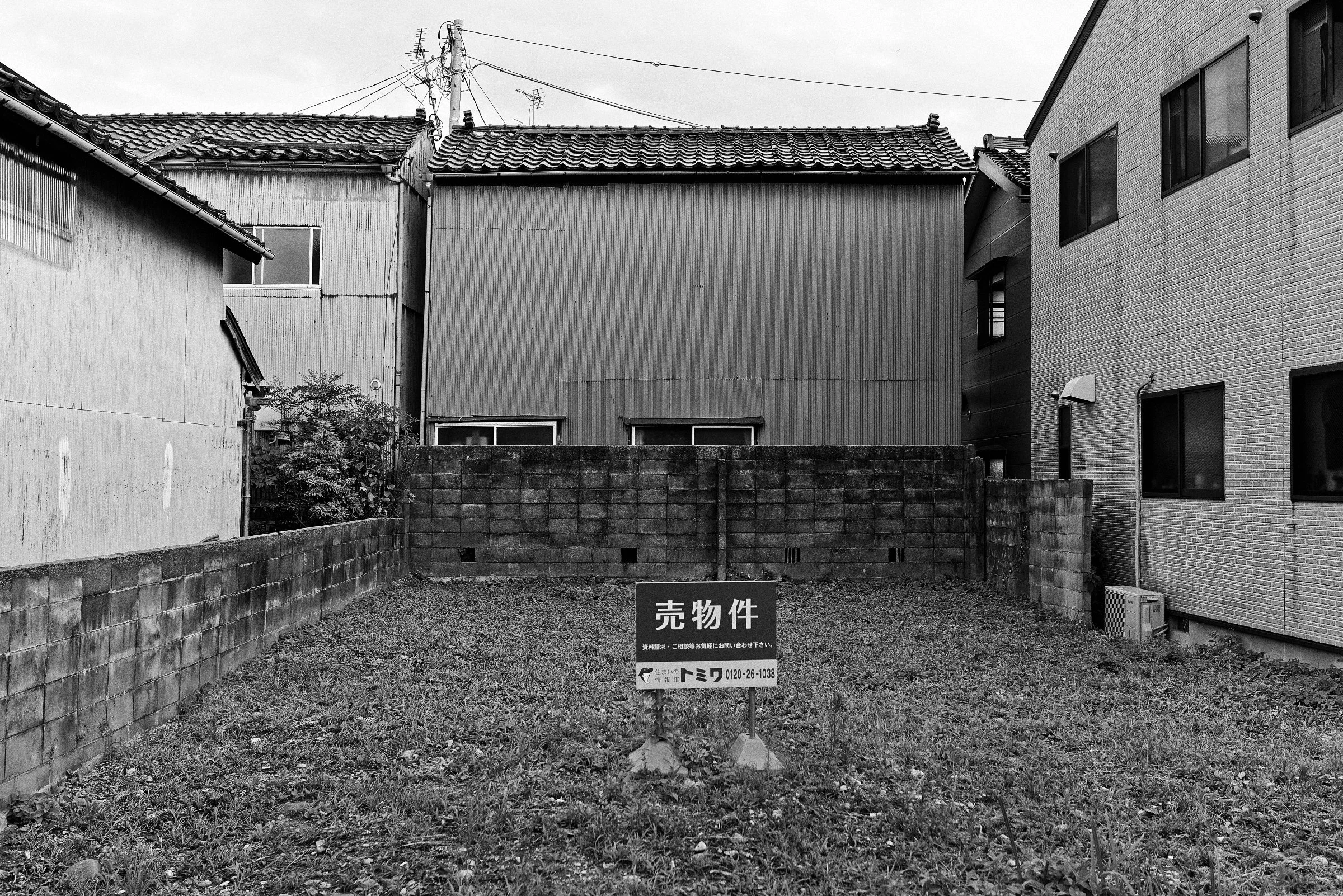 In Kanazawa Vacancy, Steven Seidenberg documents akiya (vacant houses) and akichi (vacant lots) within architecturally varied neighborhoods in Kanazawa, Japan. The series examines the recent de-densification of Japan’s second largest urban center (after Kyoto) to escape firebombing during WWII. Neighborhoods built with houses from disparate eras are punctuated by demolished lots with no impetus for new construction, leaving behind poetic voids.
